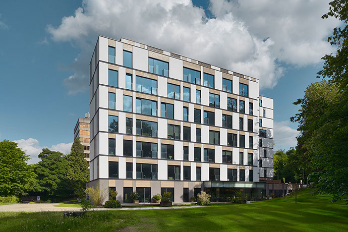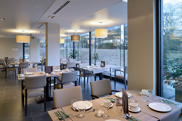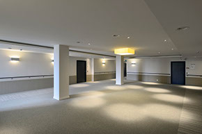 It has become a residential care centre containing 130 rooms that can accommodate up to 143 residents, 34 service flats with 1 or 2 bedrooms and all the service rooms necessary for the comfortable functioning of the nursing home. The project is surrounded by a garden and several terraces (for residents and their visitors).