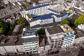 It is 10 minutes walking distance from 2 major university campuses (ULB and VUB) and from the Chirec Hospital complex. 365 is multicultural and is a perfect meeting place. It has been developed jointly with the University of Brussels. Our priority is to offer a high quality of living and ensuring maximum security to our tenants. This site is unique and low energy consuming (solar panels, insulation, green roof, condensing boiler, high performance windows).